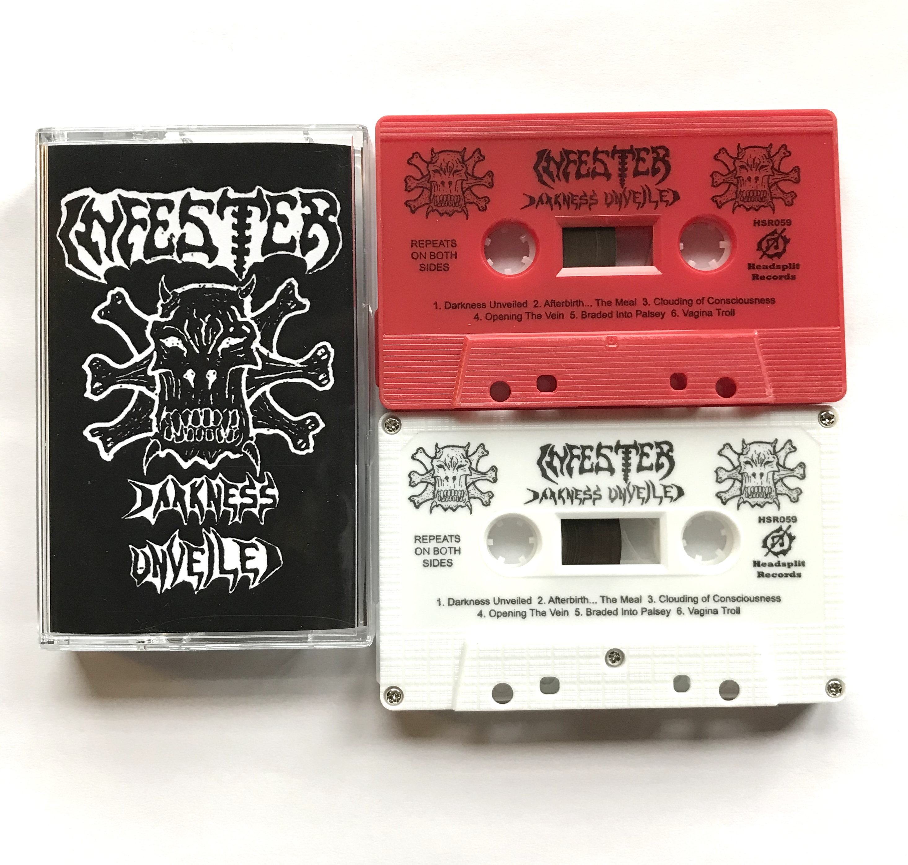 Classic cult death metal from Seattle Washington. Official re release of Infester's demo with two never before heard rehearsal tracks. 5 Panel cassette insert.