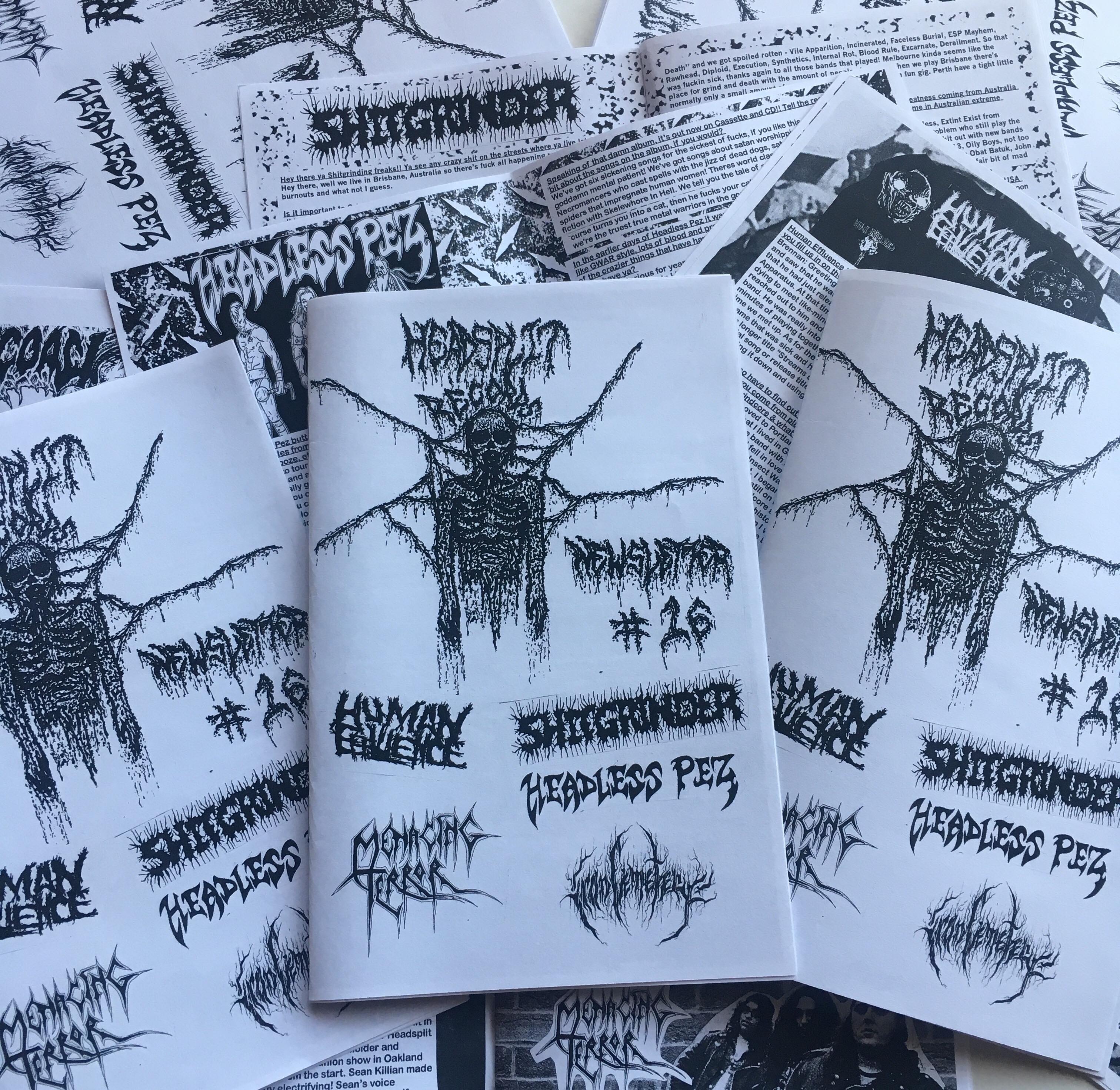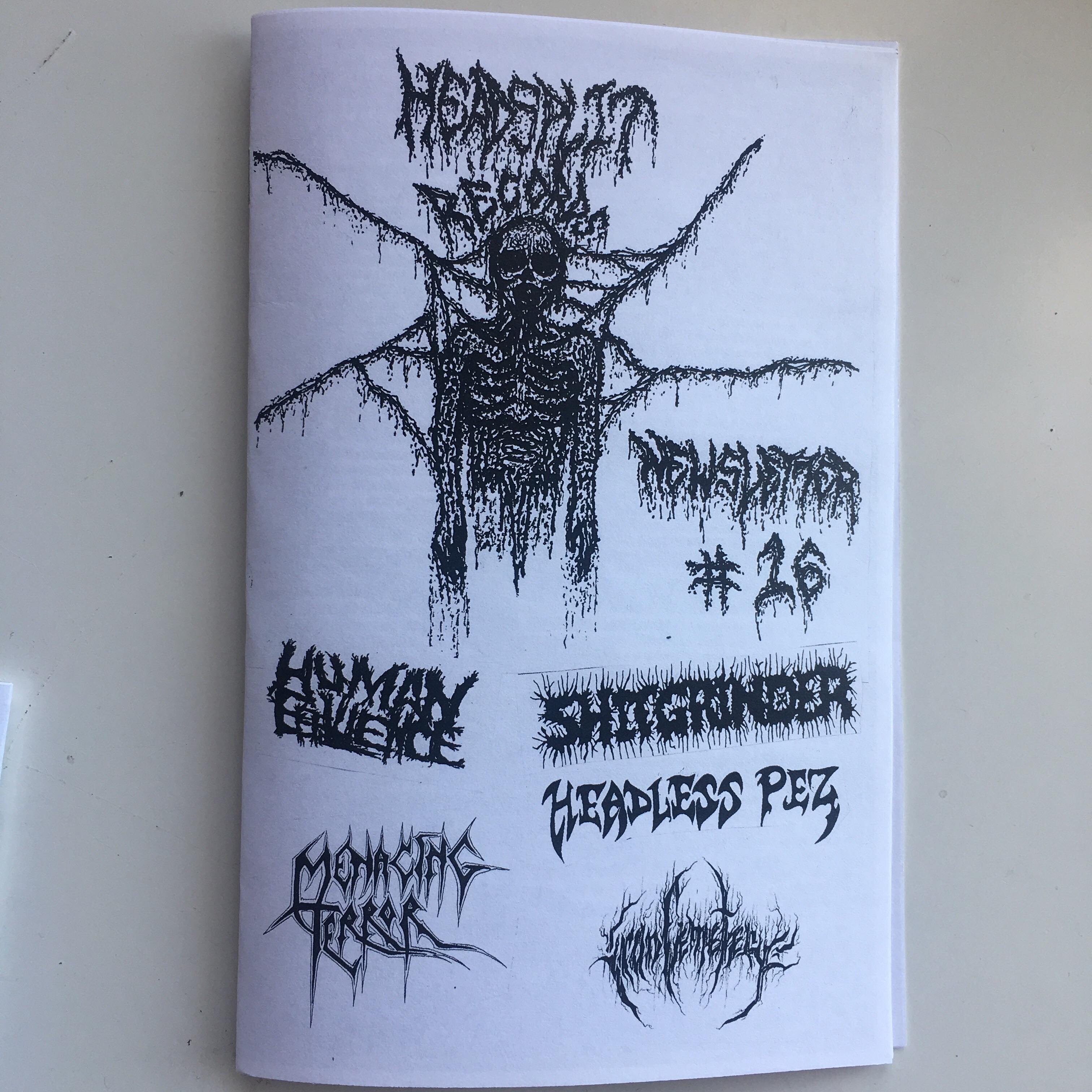 12 pages of eye burstin', barf inducin' cut'n'paste news you can use!!! Interviews with Human Effluence, Headless Pez, Shitgrinder, Iron Cemetery, and Menacing Terror.
