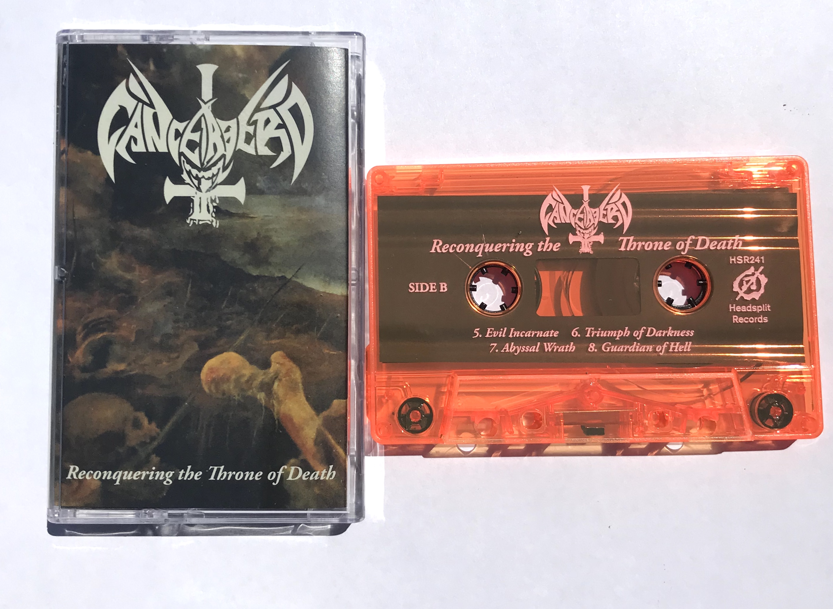 [HSR241] Official cassette version of Cancerbero's 2019 album "Reconquering The Throne of Death". A ruthless and impure insult to the holy trinity! Eight ripping tracks of ancient death metal in the traditional extreme Chilean way! For fans of Mortem, Atomic Aggressor, & Morbid Angel.