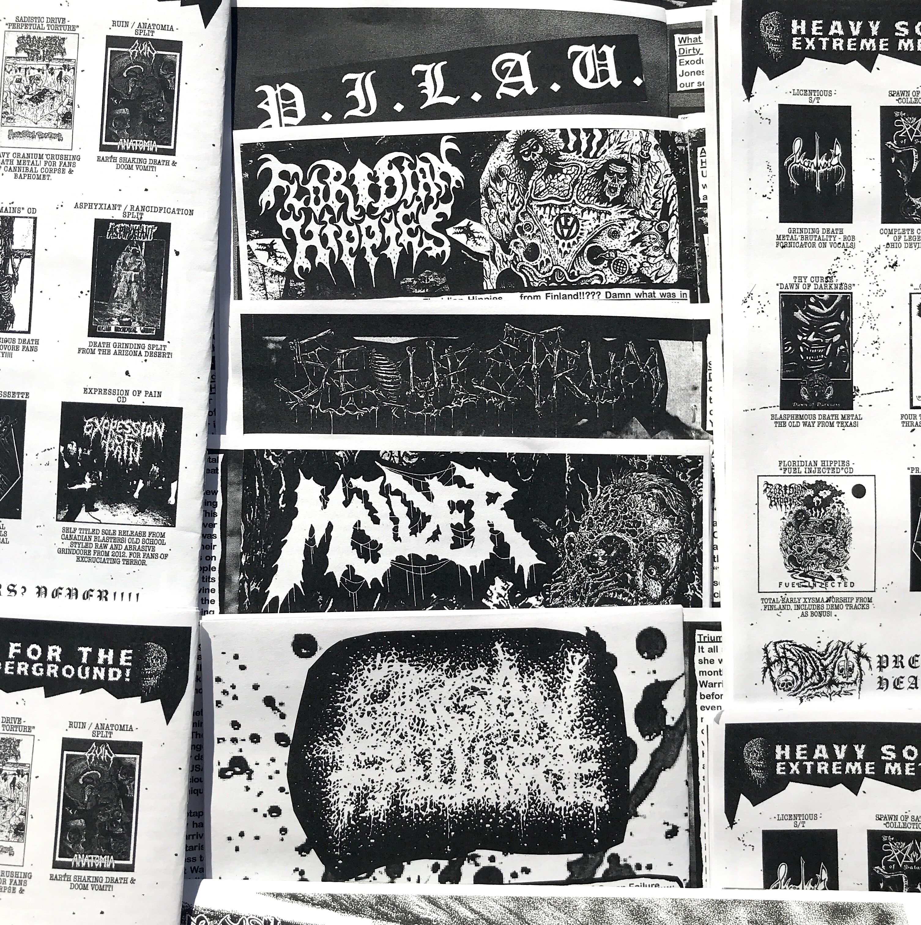 Welcome to hell, welcome to Headsplit newsletter 35!!! Another 16 page brain lacerating literary horror show. Interviews with Molder, P.I.L.A.U., Organ Failure, Sequestrum & Floridian Hippies. Triumph of Death show review by Scott Carroll (Cianide), plus some other rants and ramblings. Cover art by Galen Riggs & back page cover artwork by Barbarian420. Dont miss out on the 35th issue of the undergrounds ugliest pube-lication!!